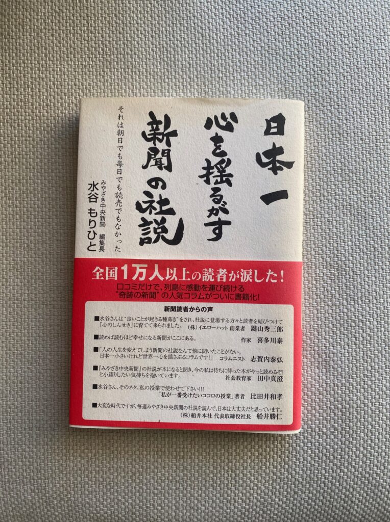 読者の声を読んでいて、ふと思い出し「日本一心を揺るがす新聞の社説」(みやざき中央新聞 編集長水谷もりひと)を読み返しました