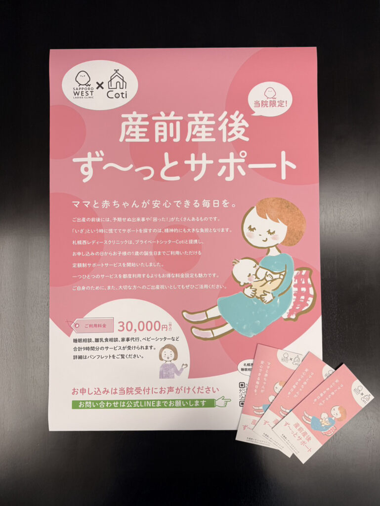 札幌市内の産婦人科クリニック様より、産前産後サポートサービスの告知ツール一式の制作をご依頼いただきました。