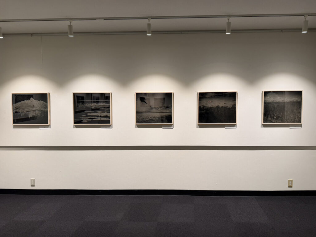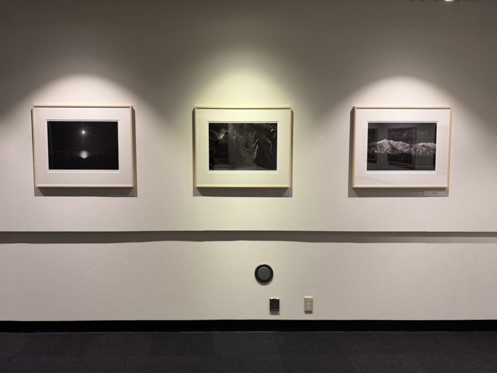 会場には、日高山脈をはじめとした北海道各地の山々や海、原野の風景が、モノクロームの大きなプリントで並びます。